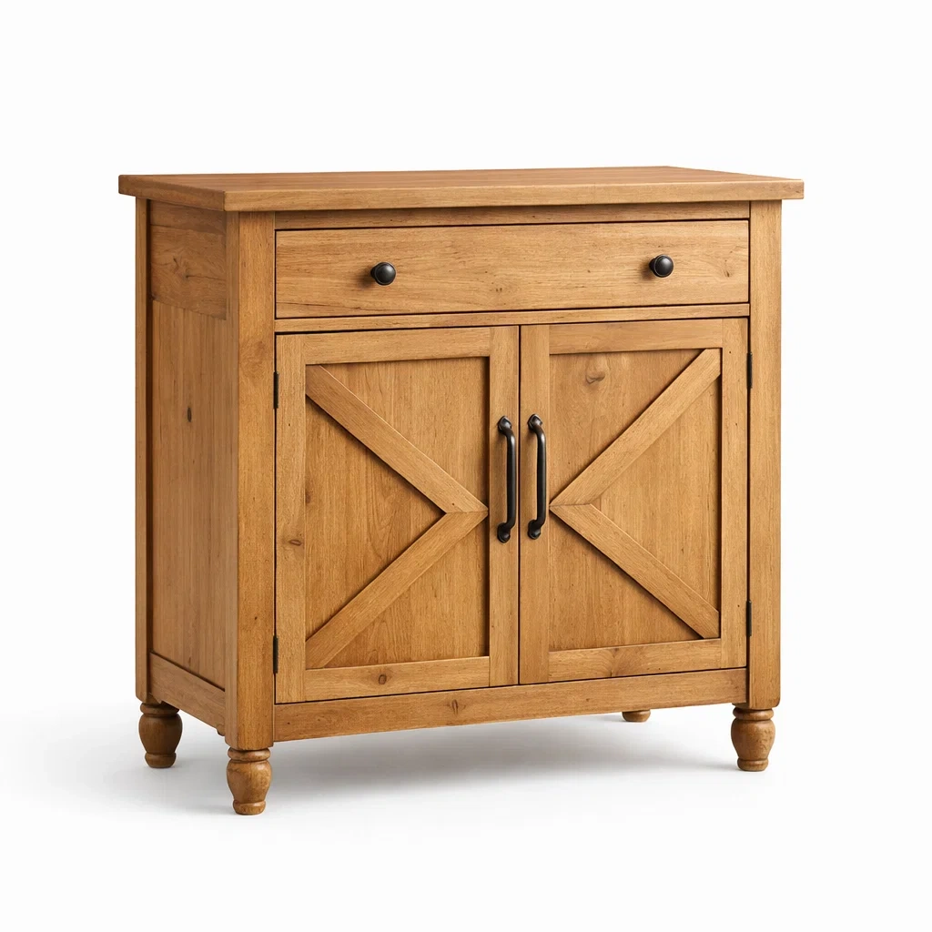 Descripcion:Mueble auxiliar con diseno rustico y estructura resistente. Incluye un cajon superior y dos puertas con amplio espacio interior para almacenamiento. Ideal para salon, comedor o dormitorio. Superficie lisa, estable y facil de limpiar.